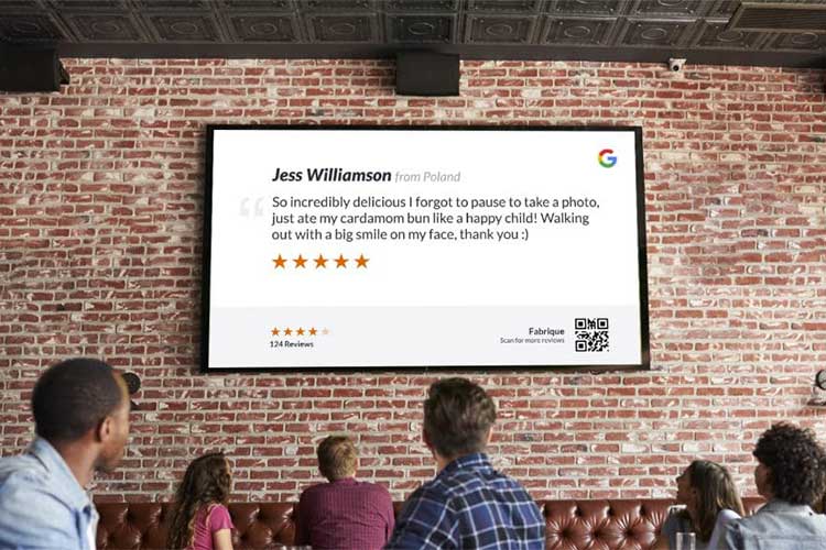 Le recensioni degli utenti influiscono sulla decisione di acquisto dei clienti e abbreviano l’intero processo di acquisto. E se visualizzate sul digital signage, le recensioni possono davvero avere un impatto sulle vendite offline della tua attività.