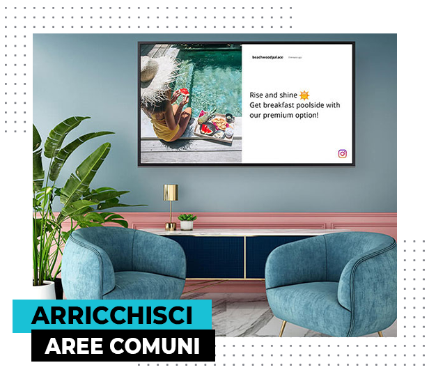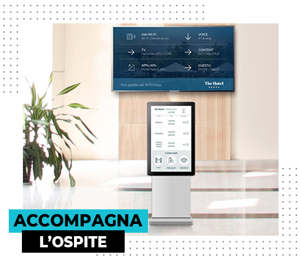 Vuoi creare una fonte di informazioni unificata e attraente di cui tutti i tuoi ospiti possano beneficiare, che può essere collocata nei punti più trafficati del tuo hotel.